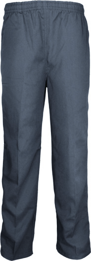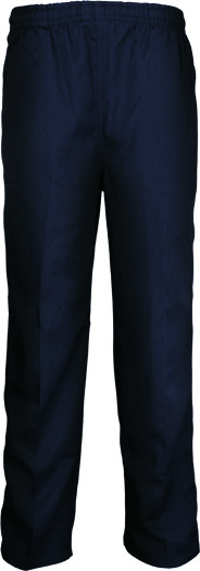 Kids School Trousers. Kids School Trousers. Featuring Elastic Waist Band With Draw Cord. With Two Open Side Pockets. Zipped Horiztontal Pocket And Single Open Back Pocket And Name Tag Label. 225Gsm 65% Polyester / 35% Rayon Drill.